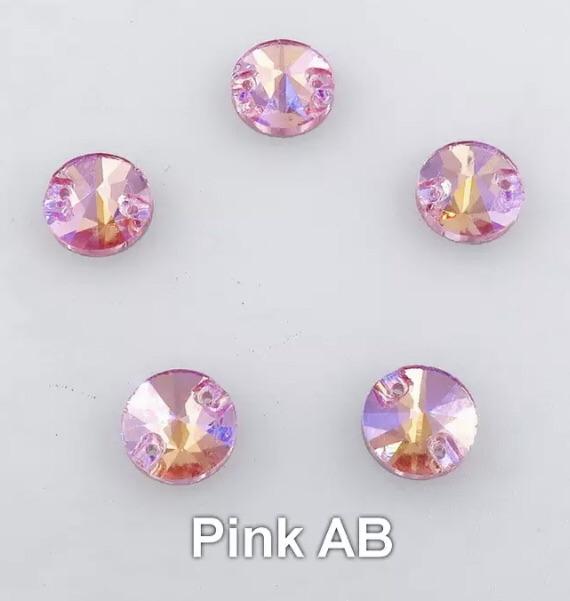 10mm Colourful AB, Rivoli Glass Gem, Sew on