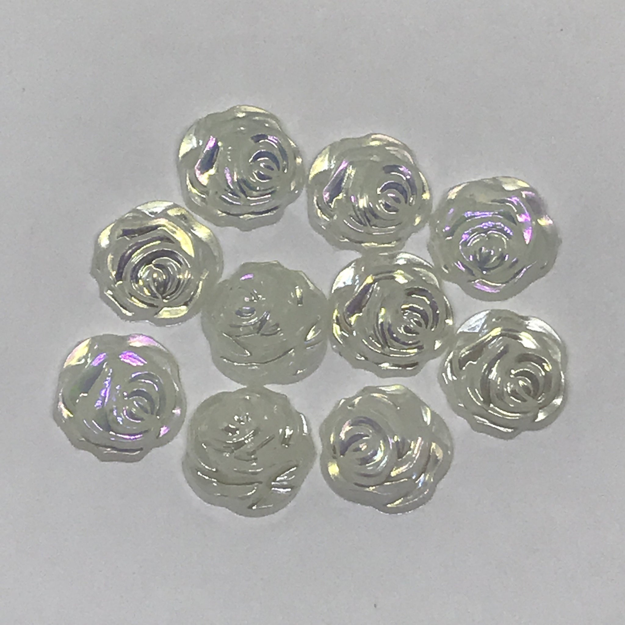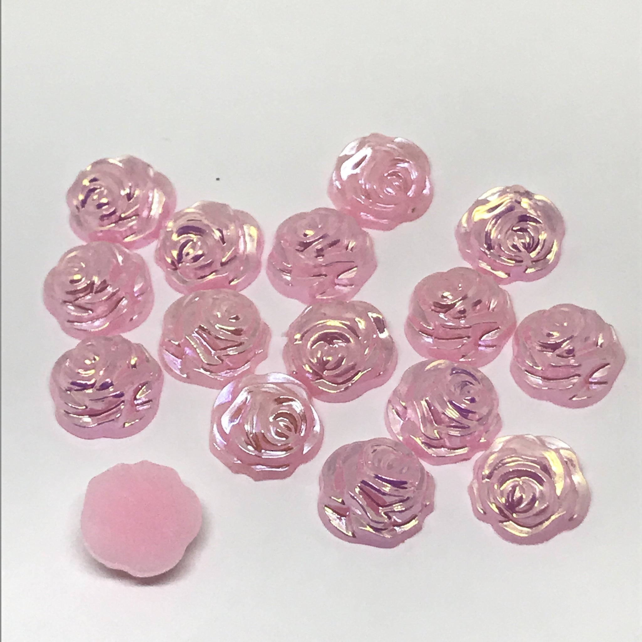 12mm Pearl AB Rose Shaped Resin Gem, Glue on