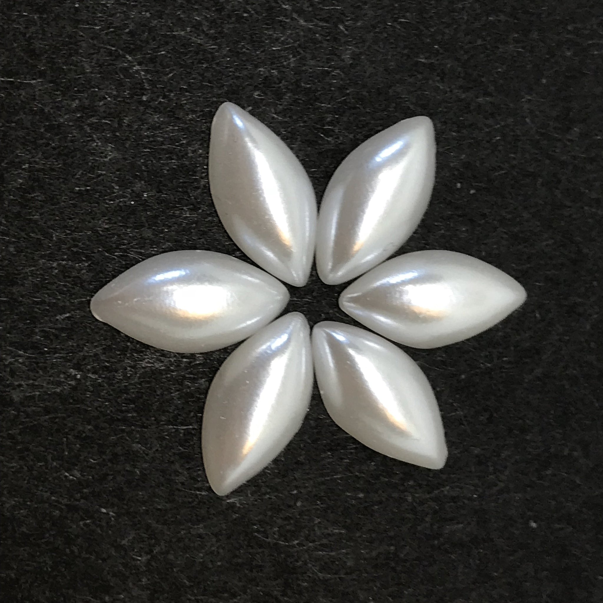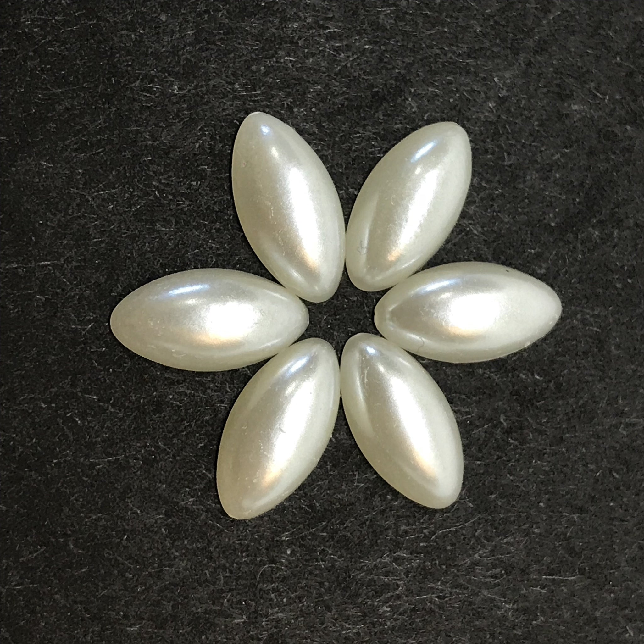 7*12mm Pearl White & Ivory Navette/Horse Eye Shaped, Glue on Pearl Resin Gem