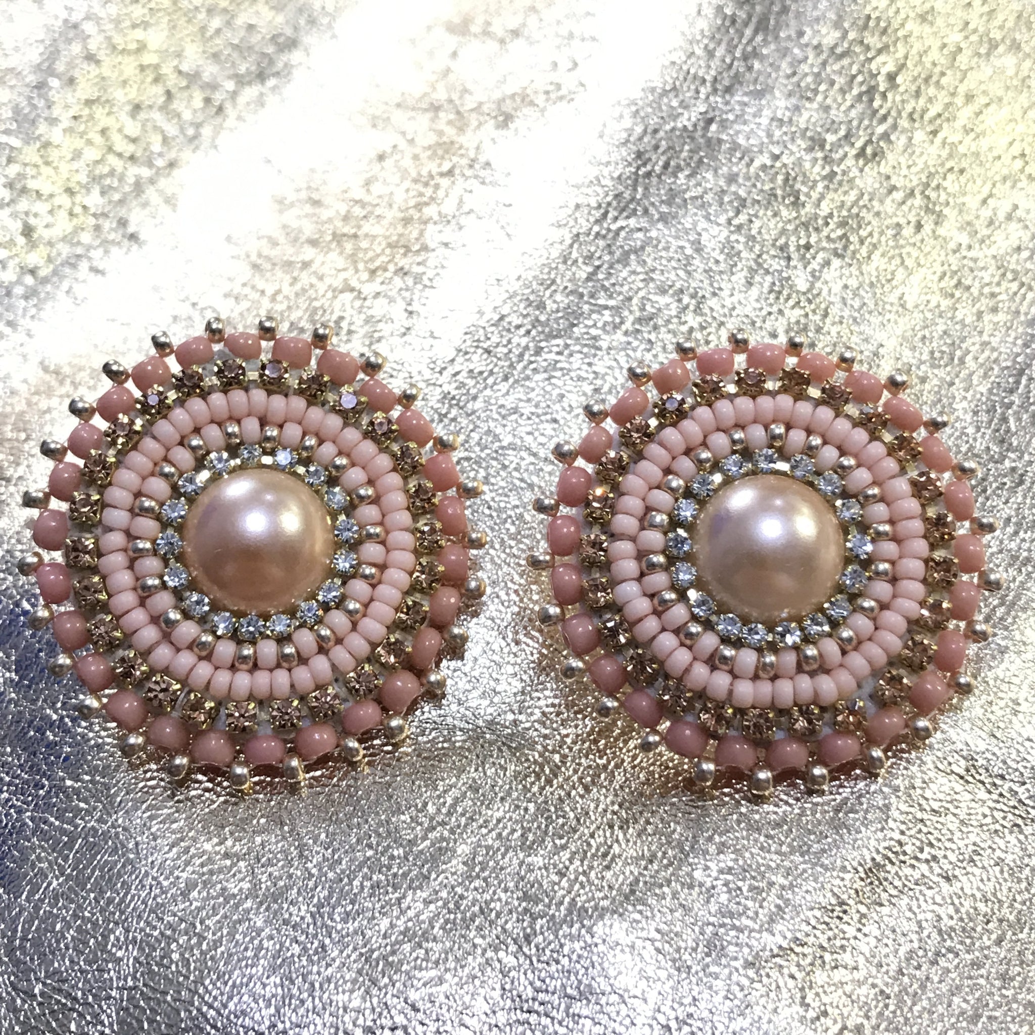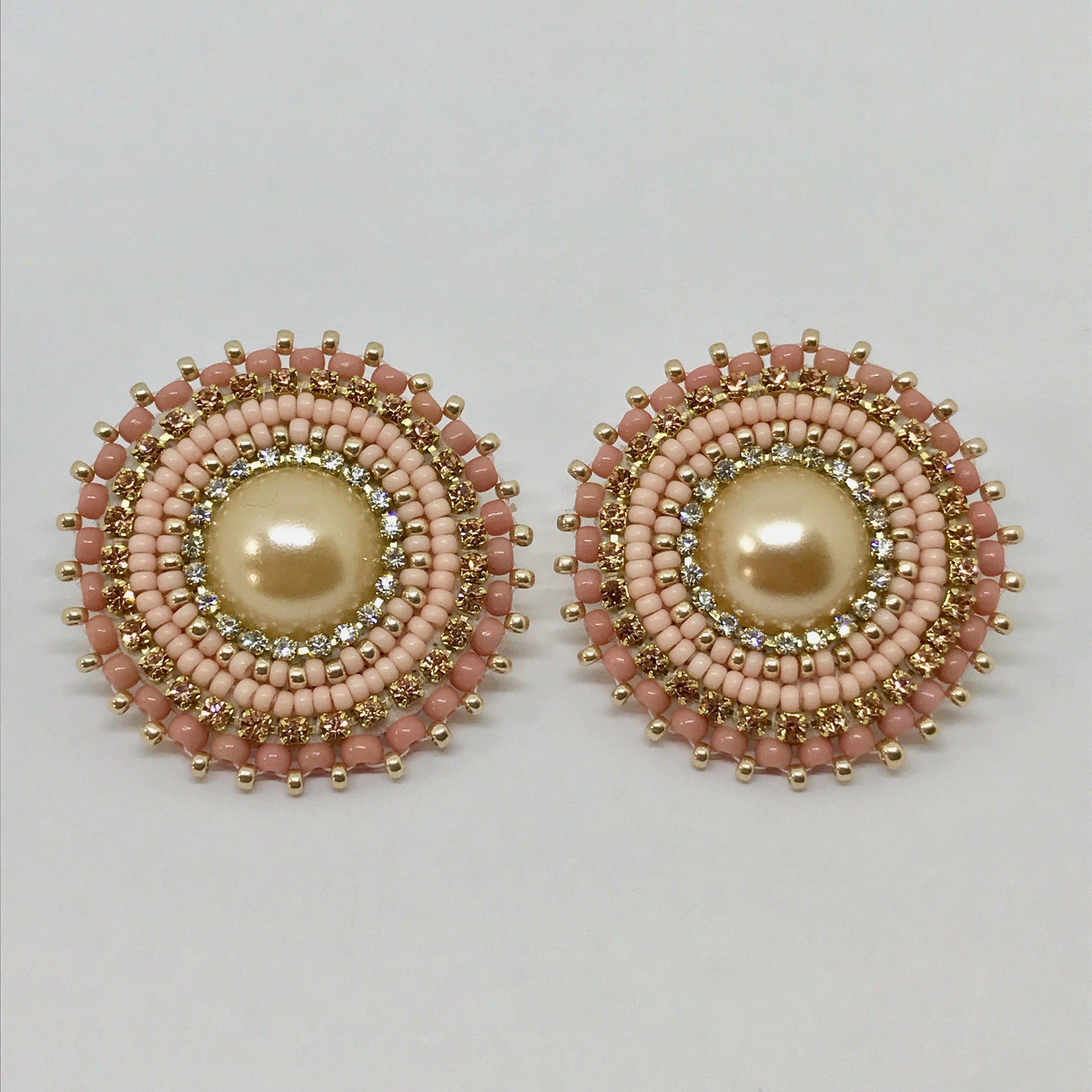 Cheyenne Pink Pearl Posts Beadwork Earrings